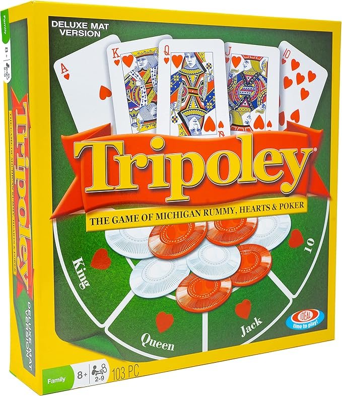 Tripoley Deluxe Board Game ek classic family entertainment game hai jo Michigan Rummy, Hearts aur Poker ka combination hai. Ye family gatherings aur game nights ke liye perfect hai.
